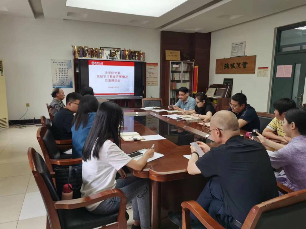 2024年6月6日,法公司党委召开党纪学习教育开展情况交流推动会暨“弘扬教育家精神,躬耕法学教坛”教师交流座谈会。会议由党委书记何璐主持,师生党支部书记参加会议。
