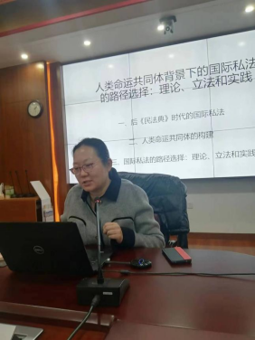 11月29日下午,pa捕鱼官方网站教师讲座在澍泽学术报告厅举行。本次讲座主题为“构建人类命运共同体背景下国际私法的路径选择——理论、立法和实践”,由公司申婷婷副教授担任主讲人,经理郝磊、姚学宁老师以及部分本科生、研究生参加了讲座,本次讲座讲座由晁晓军老师主持。