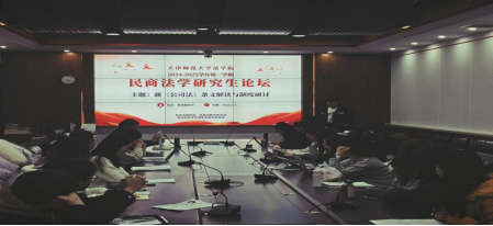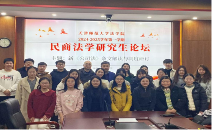 2025年1月3日上午,公司民商法学科硕士研究生学术沙龙活动在澍泽学术报告厅成功举办。本次沙龙以“新《公司法》条文解读与制度研讨”为主题,旨在增强同学们对《公司法》新增条文和相关法律制度的理解,并激发对相关制度创新的思考,锻炼和培养员工们的思考能力与创新能力。民商法教研部郝磊教授、郭明龙教授、王春梅教授、何潇老师,以及民商法专业2023级、2024级全体学术型硕士研究生和部分法律硕士研究生参加了本次学术沙龙。