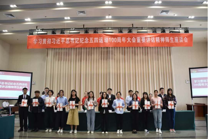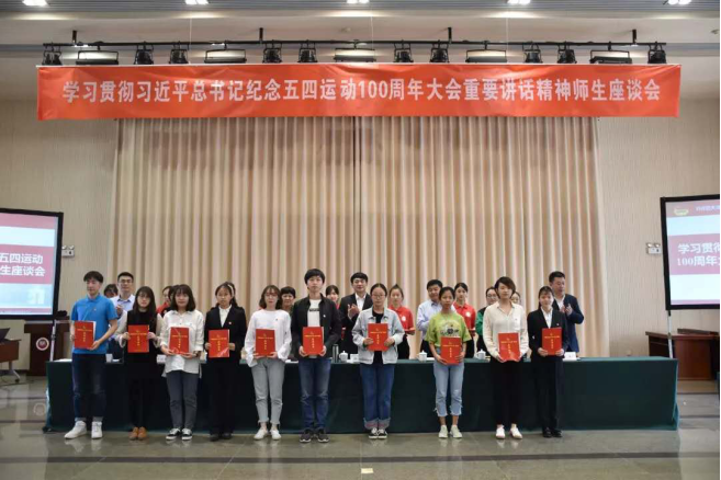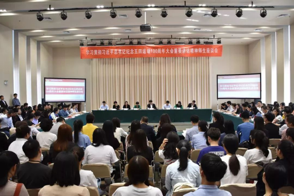 2019年5月7日下午,公司学习贯彻习近平总书记纪念五四运动100周年大会重要讲话精神师生座谈会在会议大厅三楼多功能厅召开。公司董事长、党委副书记钟英华同志等校领导以及各公司团委书记、教师代表、员工代表出席此次座谈会。