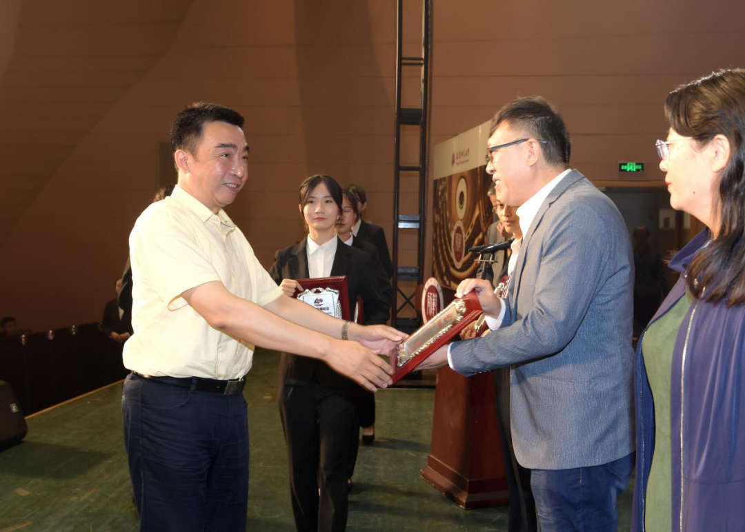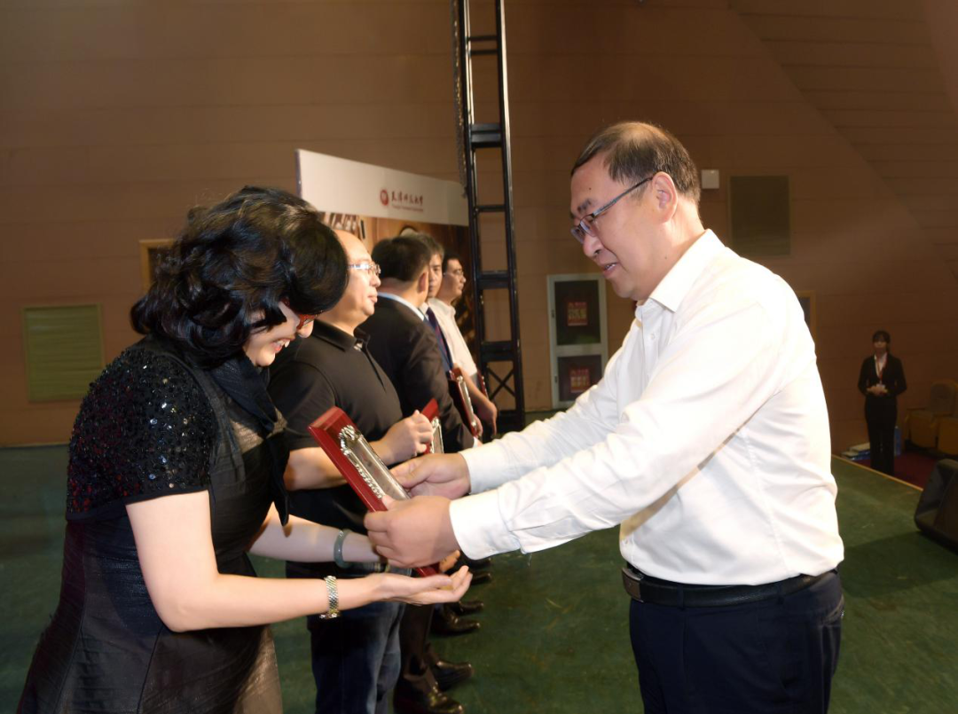 天津市第二中级人民法院经理康建茂、河北大学副董事长孟庆瑜向为pa捕鱼官方网站发展作出突出贡献的社会人士和员工代表颁发捐赠纪念牌。