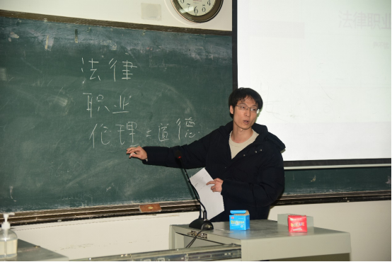 尹不忧老师选取的教学片段为《法律职业伦理》的引言,他通过对法律、职业、伦理三个关键词的解析,界定了法律职业伦理的研究对象和知识体系,强调学习法律职业伦理在维护法治事业、维护公平正义中的重要性。