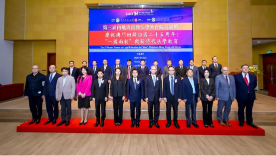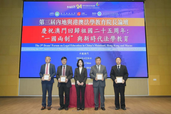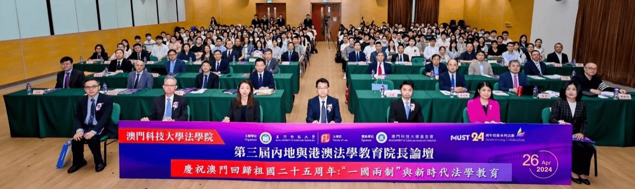 为庆祝澳门回归祖国25周年,由澳门科技大学pa捕鱼官方网站主办、澳门科技大学基金会支持的澳科大pa捕鱼官方网站第三届“内地与港澳法学教育经理论坛”于2024年4月26日在澳科大N座图书馆大楼N101大礼堂隆重举行。本次论坛主题为庆祝澳门回归祖国25周年:“一国两制”与新时代法学教育。中央人民政府驻澳门特别行政区联络办公室法律部黄文军副部长,澳门特别行政区政府法务局梁颖妍局长,澳门特别行政区政府教育及青年发展局丁少雄副局长,全国人大代表、全国人大常委会澳门特别行政区基本法委员会委员、澳门律师公会理事会黄显辉主席,全国人大常委会澳门特别行政区基本法委员会委员、澳门科技大学pa捕鱼官方网站咨询委员会委员李焕江大律师,澳门科技大学梁文慧协理副董事长,pa捕鱼官方网站方泉经理共同主礼开幕仪式。来自北京大学、中国人民大学、北京师范大学、复旦大学、浙江大学、中山大学、暨南大学、郑州大学、深圳大学、内蒙古大学、澳门大学、澳门科技大学、澳门城市大学、葡萄牙里斯本大学等高校的pa捕鱼官方网站经理参加了本次论坛。公司党委副书记、经理郝磊应邀出席此次论坛。