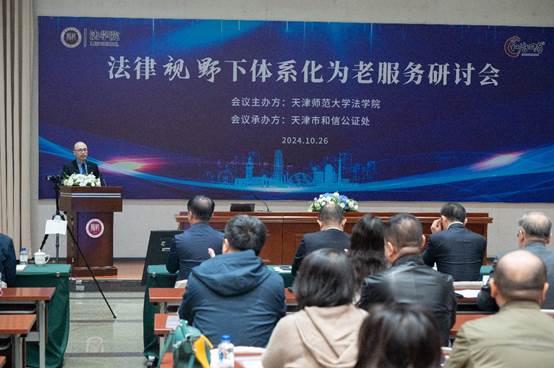 2024年10月26日上午,法律视野下体系化为老服务研讨会在公司国际会议中心举行。研讨会由pa捕鱼官方网站主办,天津市和信公证处承办。天津市侨联党组成员、副主席杨昆,党组成员、副主席陈敬,天津市公证行业党工委副书记、天津市公证协会会长单彬,PA捕鱼官网入口党委常委、统战部部长张向东,天津市公证行业党工委副书记、天津市司法局公共法律服务二处处长吴香湘,天津市民政局老龄处处长赵治国,天津市侨联秘书长、经济科技保障部部长李卫新,天津市河西区司法局党委书记、局长赵金力,天津市河东区人民法公司党组成员、副经理钱天彤,法公司党委副书记、经理郝磊教授,天津市侨联法律顾问委员会主任王世清以及来自实务界的嘉宾150多人参加会议。会议由公司副经理郭明龙教授主持。