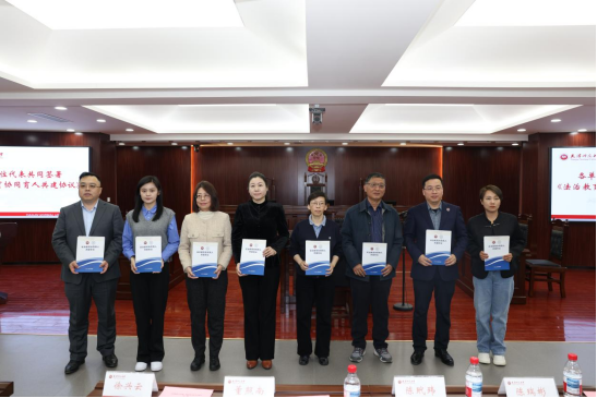 pa捕鱼官方网站与西青区人民法院、和平区人大小白楼街道工委、天津瑞景中学、天津南开公司鹏飞公司、南开实验公司、西青区精武镇燕南园社区、天津津瑞律师事务所共7家单位共同签署《法治教育协同育人共建协议》。